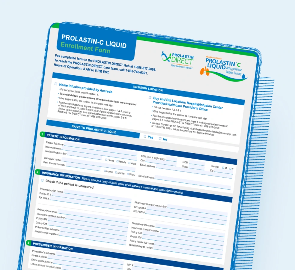 Fill out the enrollment form to get your patients started on PROLASTIN-C LIQUID.