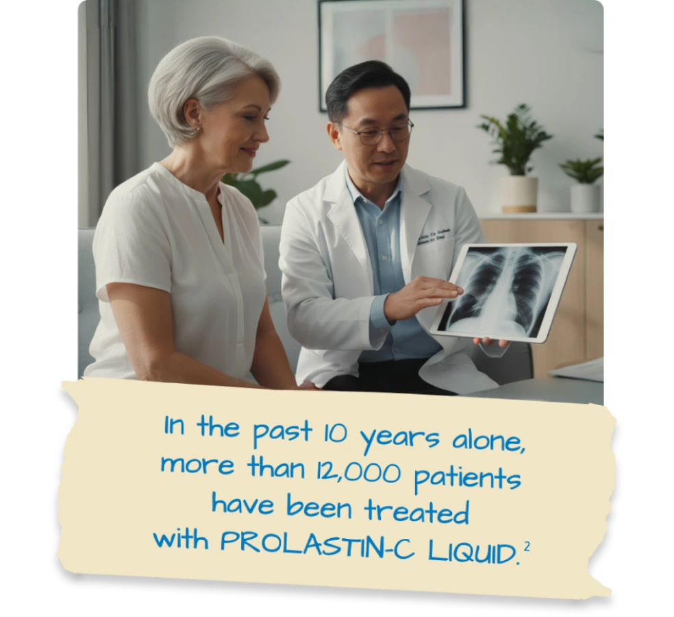 PROLASTIN®-C LIQUID is an alpha1-proteinase inhibitor (human) (alpha1-PI) indicated for chronic augmentation and maintenance therapy in adults with clinical evidence of emphysema due to severe hereditary deficiency of alpha1-PI (alpha1-antitrypsin deficiency).