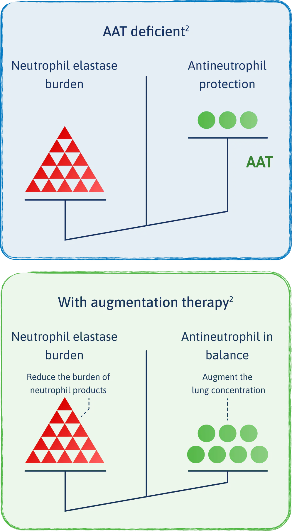 Augmentation therapy is proven to effectively raise alpha1 antitrypsin (AAT) levels in patients with alpha-1 that help keep neutrophil elastase in check.2